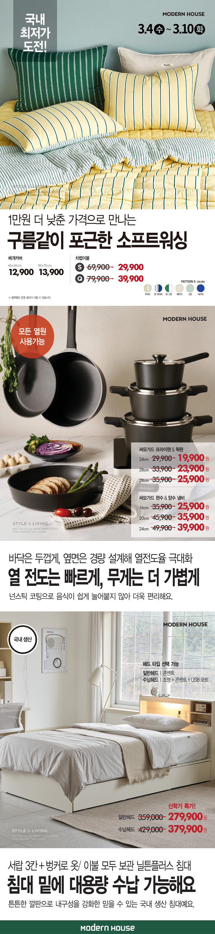 모던하우스 조리용기/소프트 워싱 침구 특가전