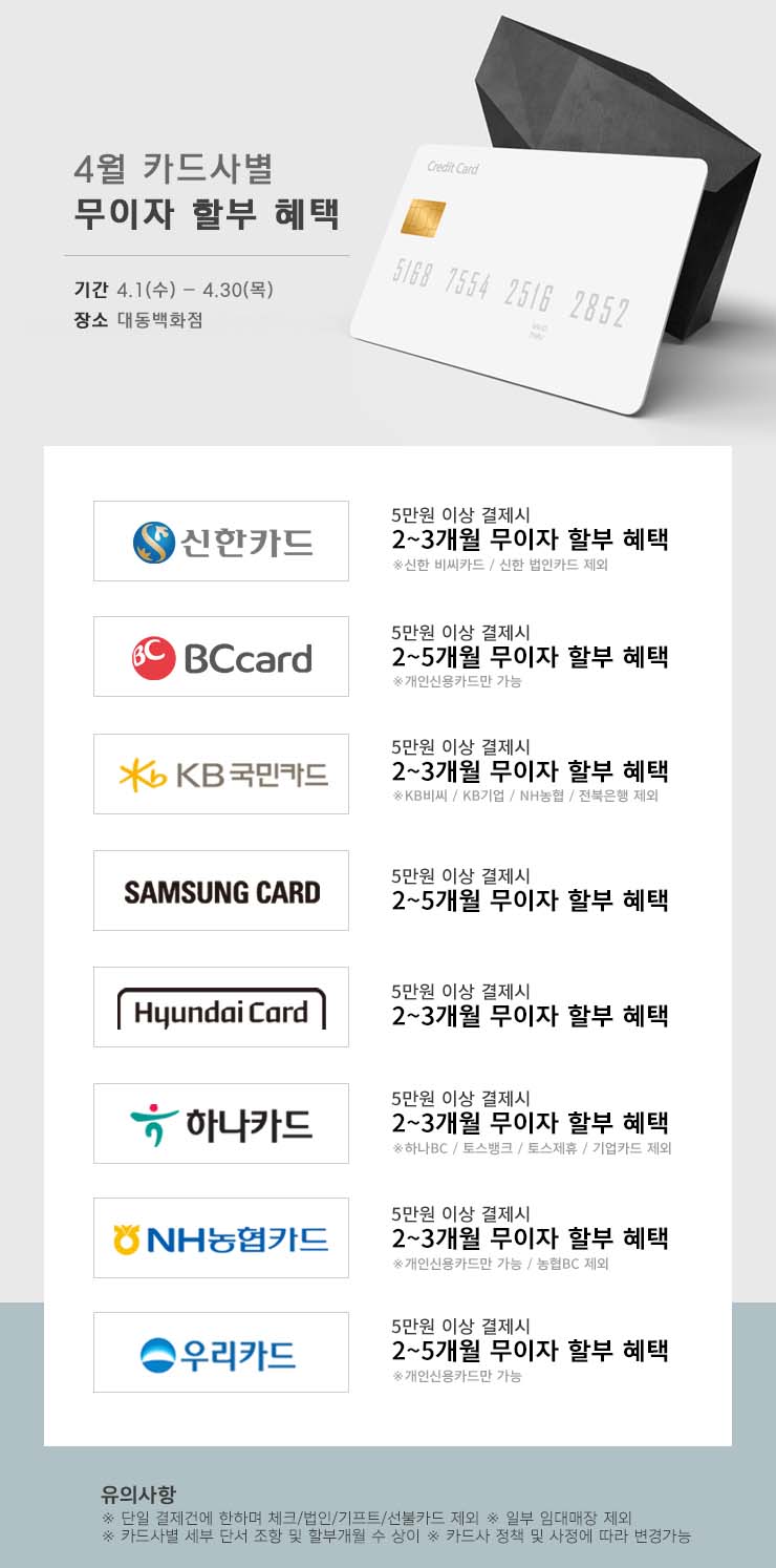 4월 카드사별 무이자 할부 혜택